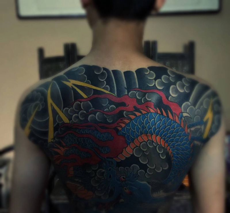 • T云龙九郎纹身图片_背部老传统云龙九郎纹身图案