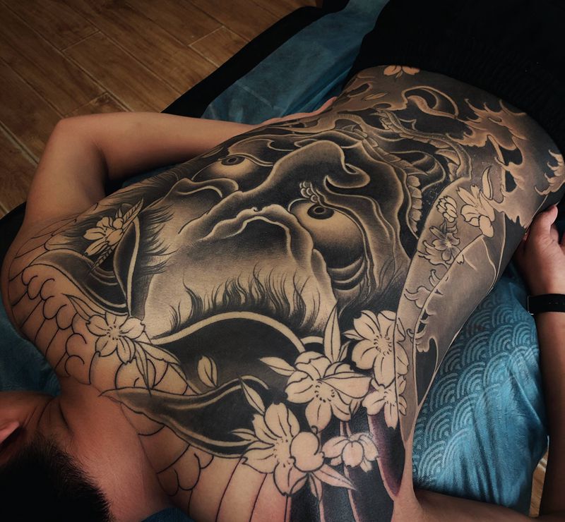 • 黑灰满背纹身图案