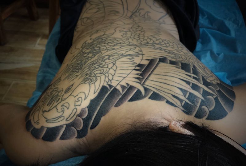 • T云龙九郎纹身图片_背部老传统云龙九郎纹身图案
