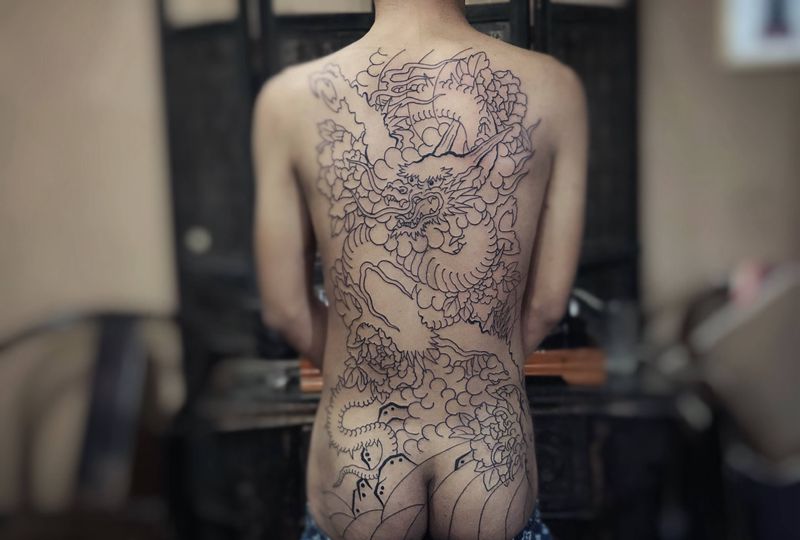 • T云龙九郎纹身图片_背部老传统云龙九郎纹身图案