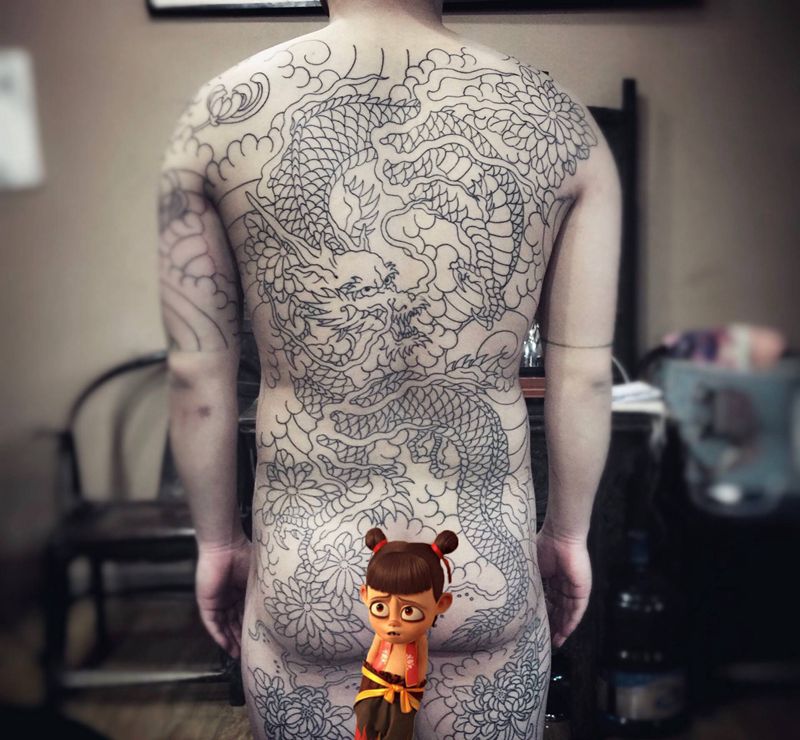 • T云龙九郎纹身图片_背部老传统云龙九郎纹身图案