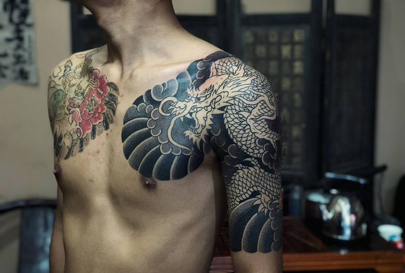 • T云龙九郎纹身图片_背部老传统云龙九郎纹身图案