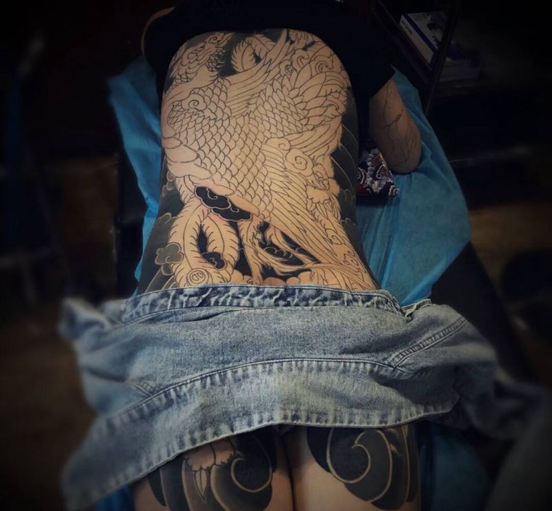 • T云龙九郎纹身图片_背部老传统云龙九郎纹身图案