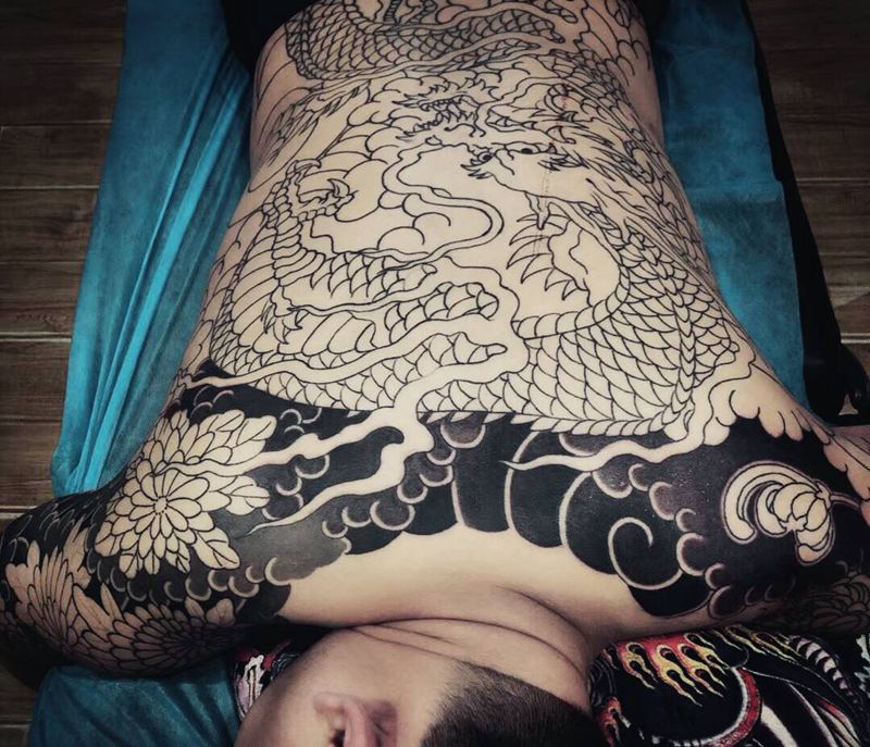 • T云龙九郎纹身图片_背部老传统云龙九郎纹身图案