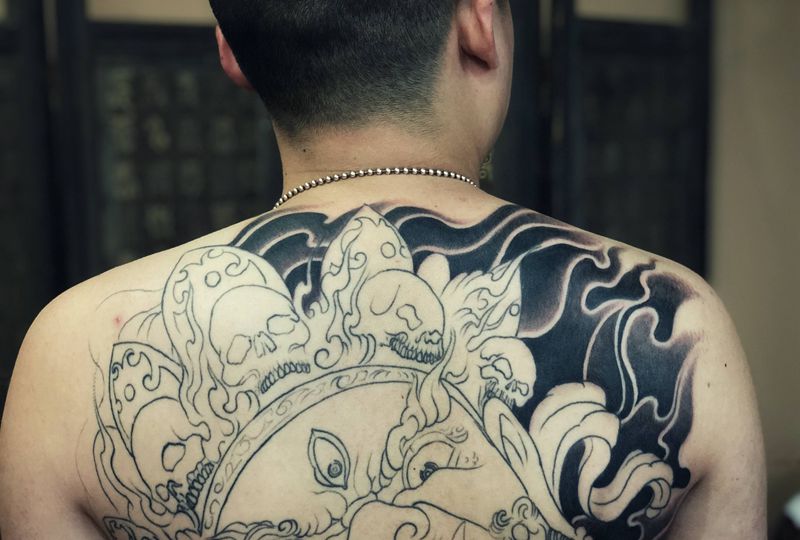• T云龙九郎纹身图片_背部老传统云龙九郎纹身图案