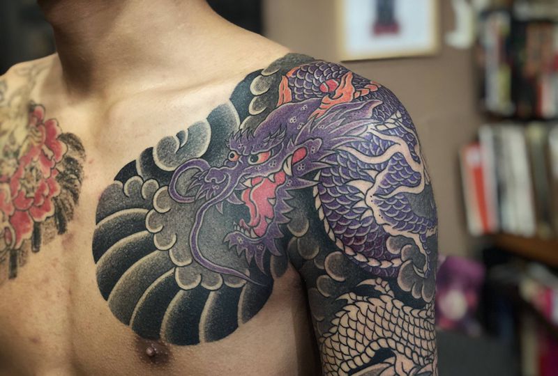 • T云龙九郎纹身图片_背部老传统云龙九郎纹身图案