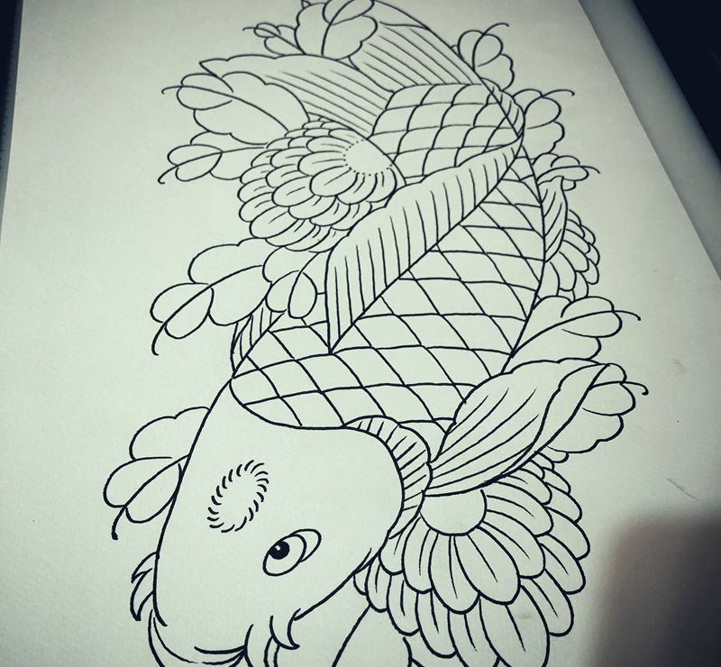 当前位置: 首页 >河南省鹤壁市纹身店-刺艺堂—刺道纹身图案>繪稿锦鲤~纹身图片_老传统纹身图案