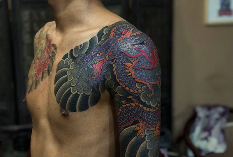 当前位置: 首页 >河南省鹤壁市纹身店-刺艺堂—刺道纹身图案>今日神龙收尾 天公也配合 一会纹身图片_老传统纹身图案
