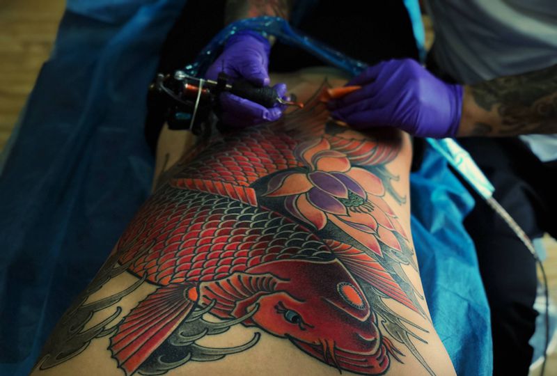 • T网红王老大花腿龙纹身图片_腿部新传统纹身图案