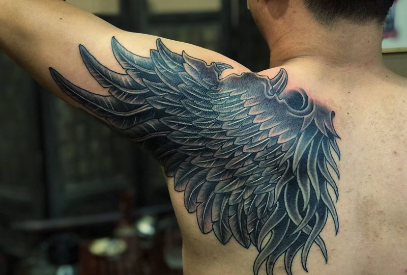 • 纹身吧推荐的披肩图腾半胛纹身图案作品展示
