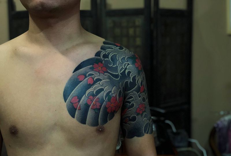 当前位置: 首页 >河南省鹤壁市纹身店-刺艺堂—刺道纹身图案>传统半胛作品~纹身图片_老传统纹身图案