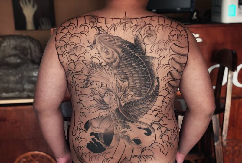 • T云龙九郎纹身图片_背部老传统云龙九郎纹身图案