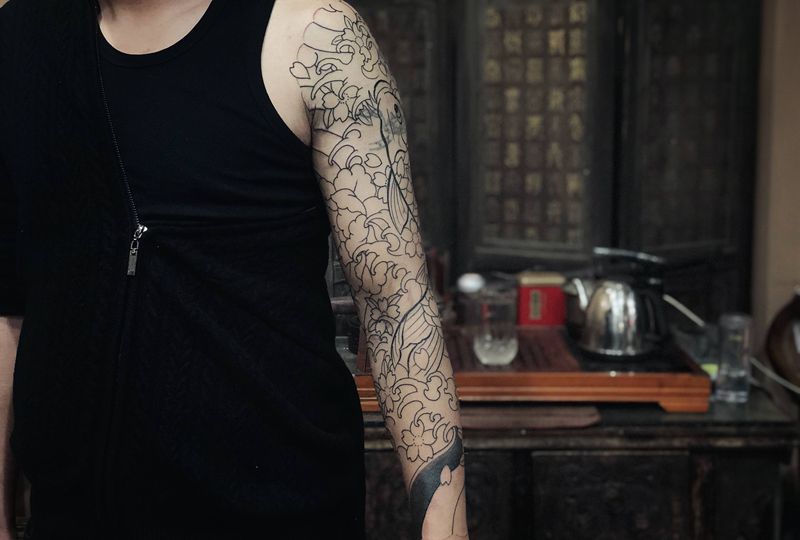 当前位置: 首页 >河南省鹤壁市纹身店-刺艺堂—刺道纹身图案>传统锦鲤花臂进度~纹身图片_老传统纹身图案