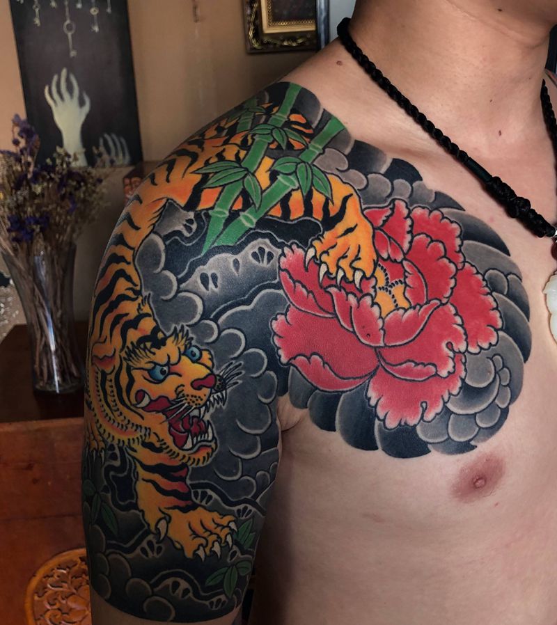• 女性大花胸纹身_43张霸气漂亮的女性大花胸纹身图案作品