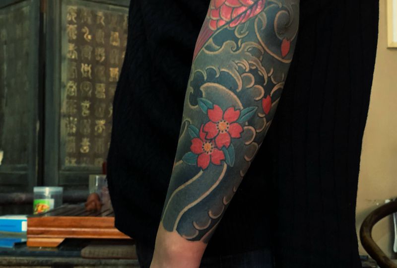 当前位置: 首页 >河南省鹤壁市纹身店-刺艺堂—刺道纹身图案>锦鲤覆盖恢复中~纹身图片_老传统纹身图案