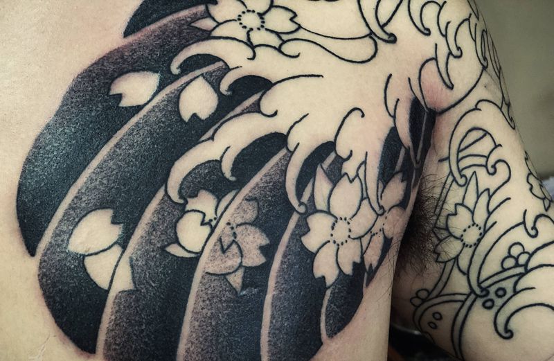 黑灰满背纹身图案