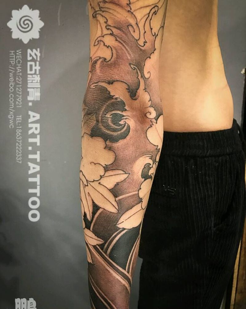 当前位置: 首页 >河南省安阳市纹身店-安阳玄古纹刺纹身工作室纹身图案>荷花花臂纹身图片_手臂传统习俗国画植物静物鬼神宗教原创成品纹身图案