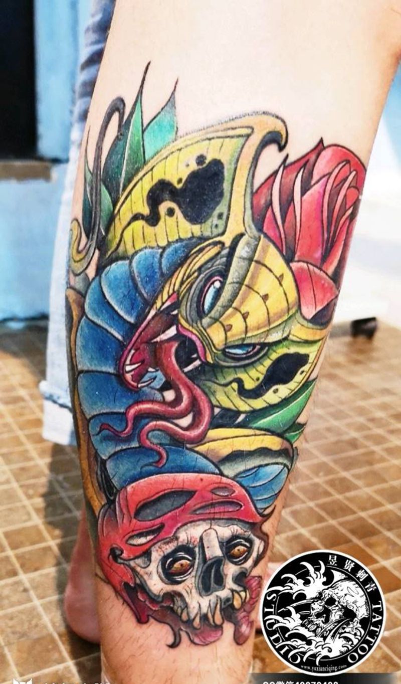 当前位置: 首页 >河南省新乡市纹身店-昱贤刺青纹身图案>蛇 斯内克纹身图片_腿部Old SchoolNew School重彩纹身图案