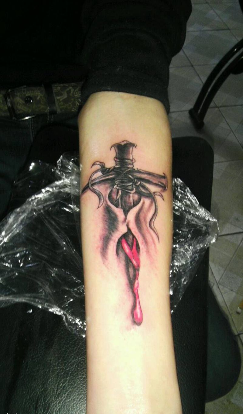 当前位置: 首页 >河南省新乡市纹身店-昱贤刺青纹身图案>十字架纹身图片_手臂欧美静物十字架成品纹身图案