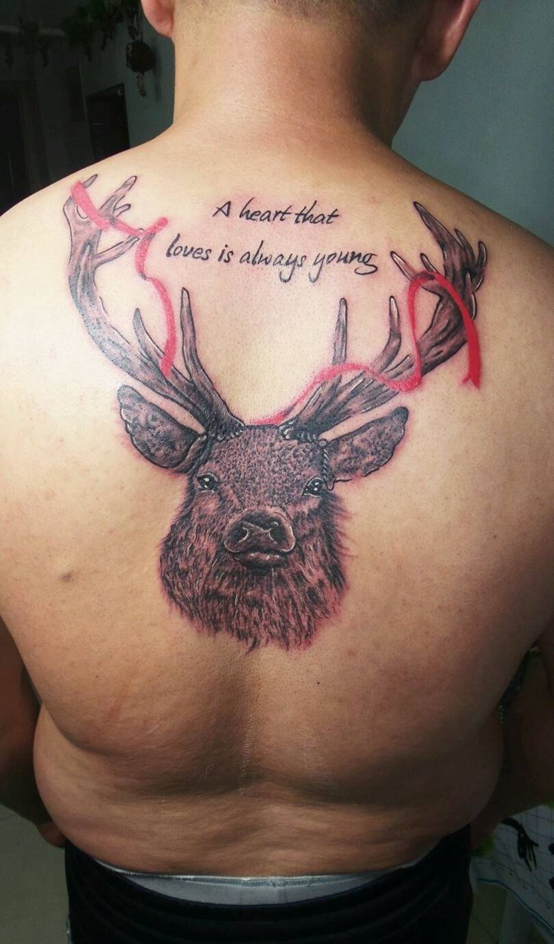 鹿纹身图片_背部欧美动物原创鹿成品纹身图案