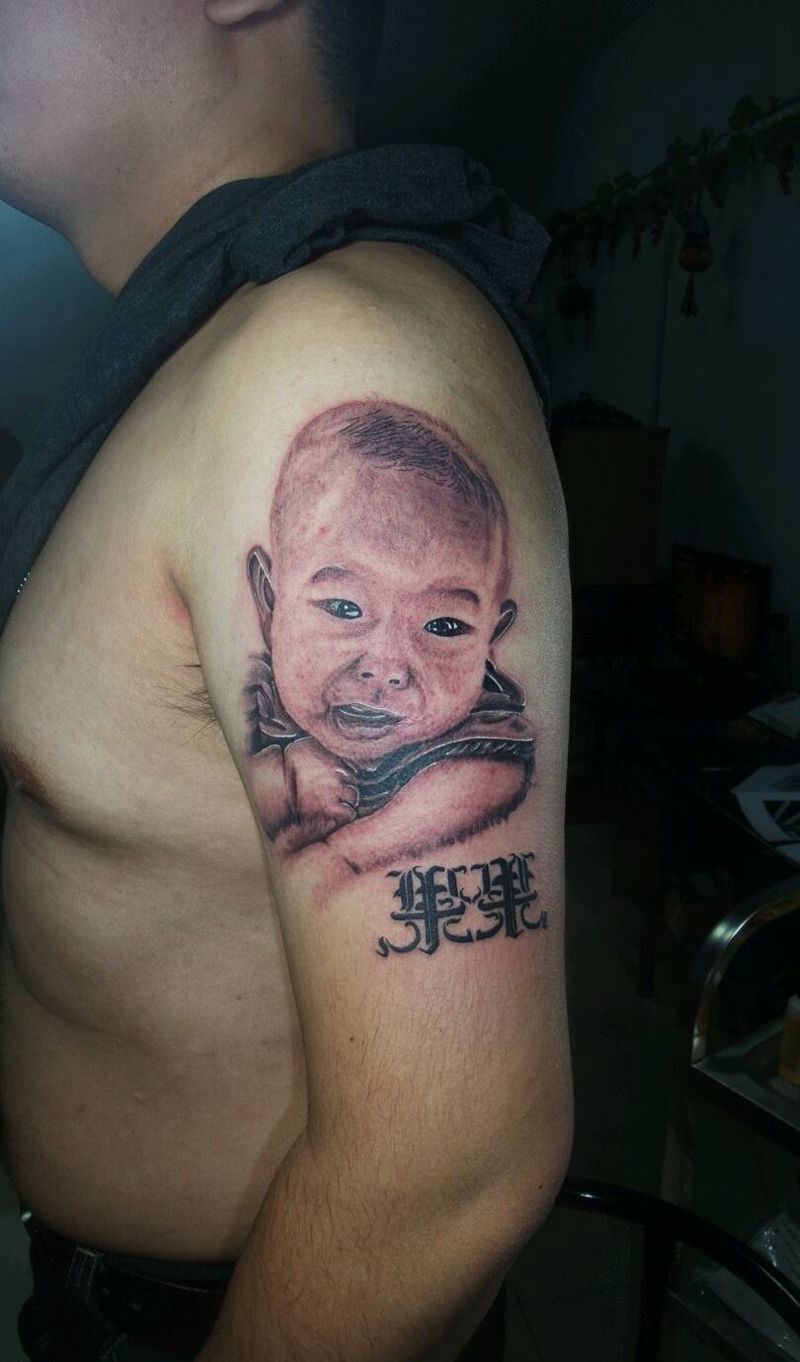 宝宝肖像纹身图片_肩部腹部腰部臀部手臂欧美肖像人物原创成品纹身图案