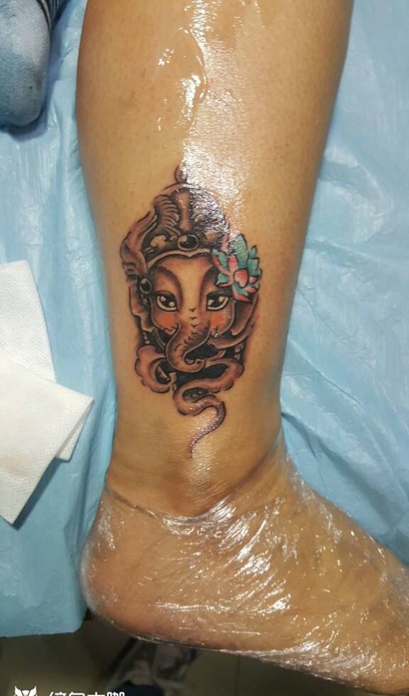 当前位置: 首页 >河南省新乡市纹身店-昱贤刺青纹身图案>小象神纹身图片_腿部传统动物鬼神宗教成品纹身图案