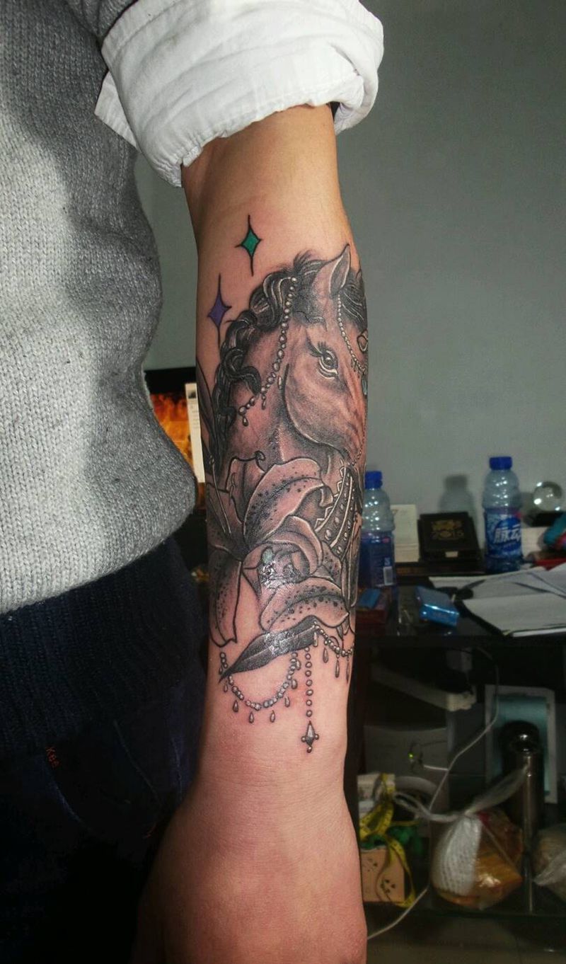 独角兽 恢复前纹身图片_手臂欧美清新动物独角兽成品纹身图案