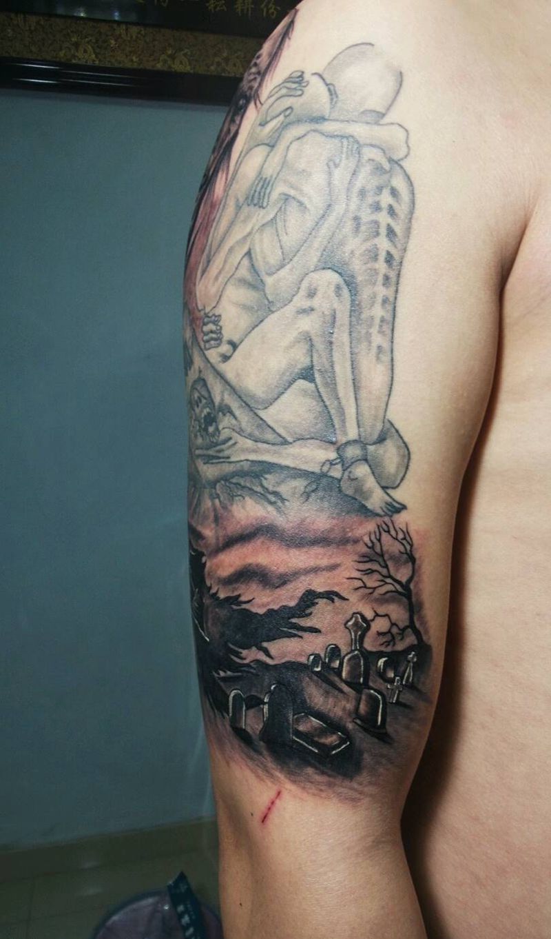 死了都要爱纹身图片_手臂欧美鬼神宗教死神成品纹身图案