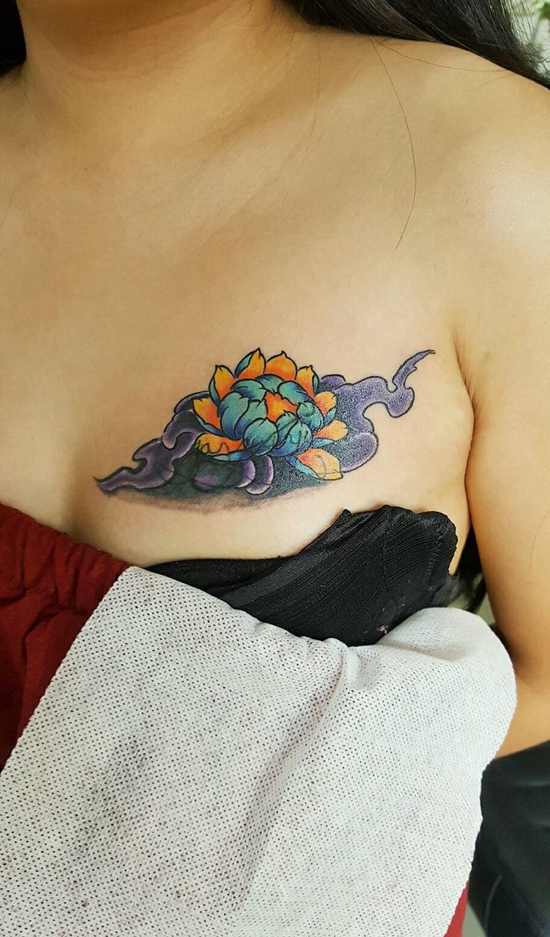 • 女性大花胸纹身_43张霸气漂亮的女性大花胸纹身图案作品