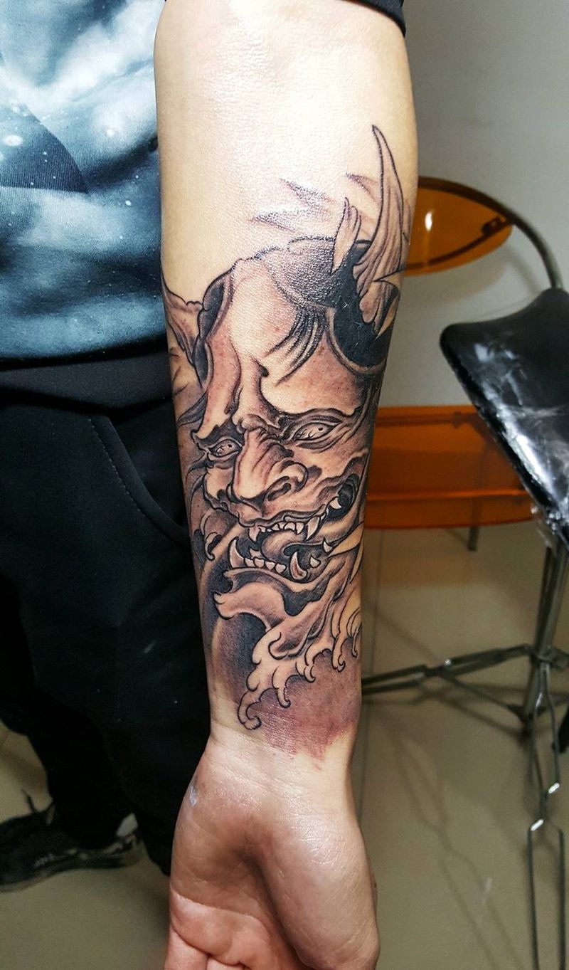 当前位置: 首页 >河南省新乡市纹身店-昱贤刺青纹身图案>般若纹身图片_手臂传统人物鬼神般若成品纹身图案