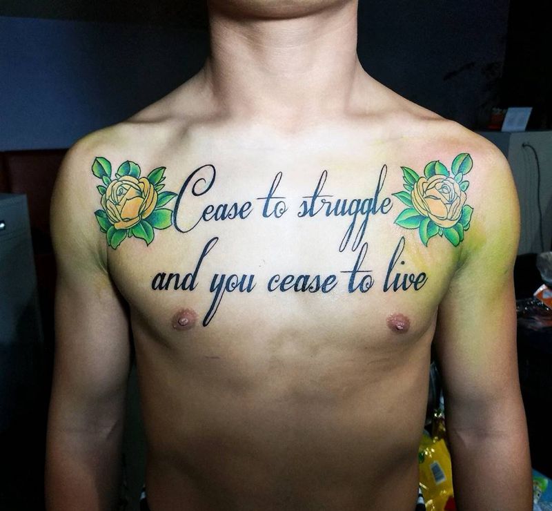 当前位置: 首页 >河南省新乡市纹身店-昱贤刺青纹身图案>花体字母纹身图片_胸部欧美清新静物图腾花胸成品纹身图案