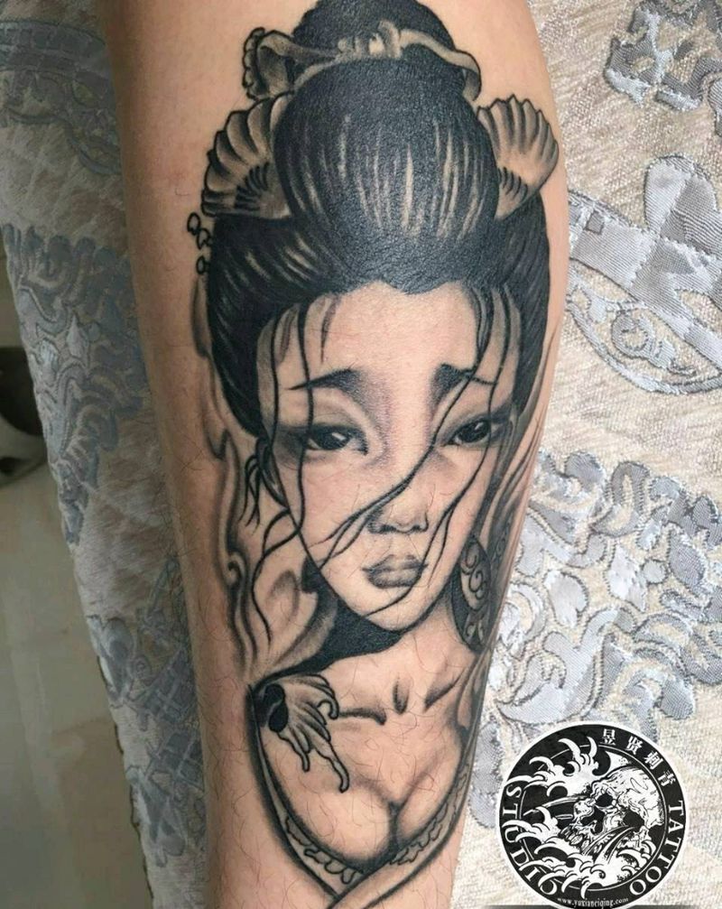 艺姬纹身图片_腹部腰部背部臀部腿部传统清新人物艺姬成品纹身图案