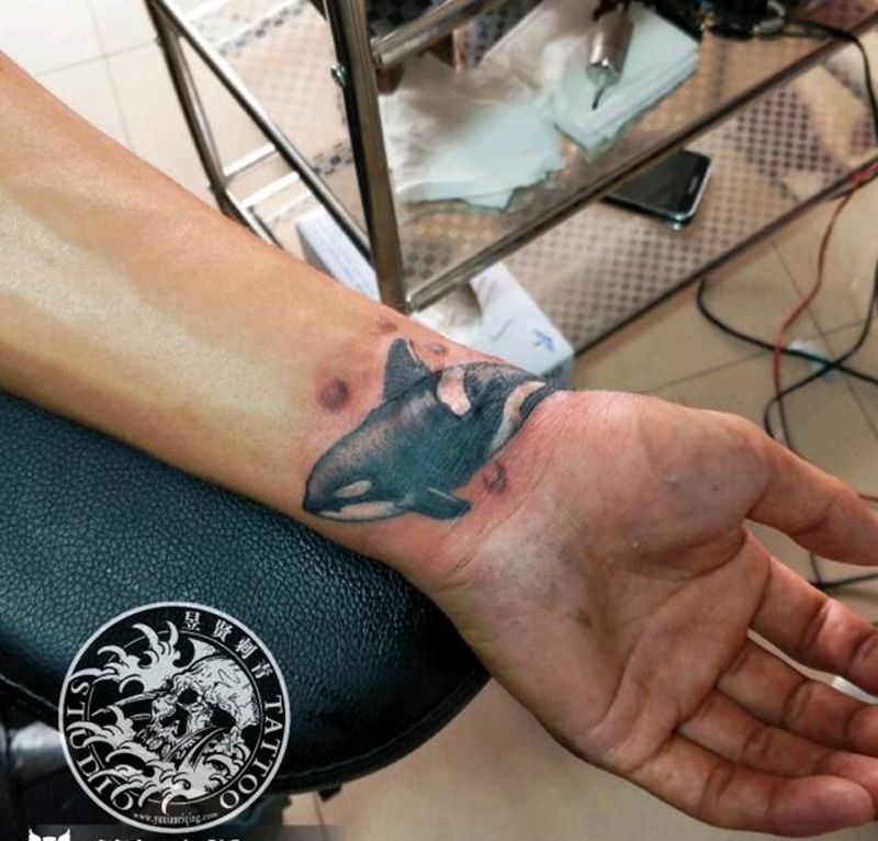 当前位置: 首页 >河南省新乡市纹身店-昱贤刺青纹身图案>鲸鱼纹身图片_手部手臂欧美写实水彩鲸鱼纹身图案