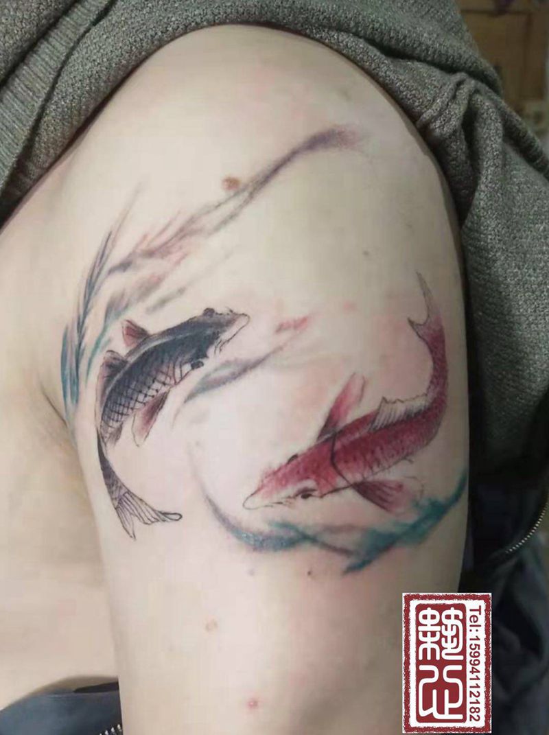 当前位置: 首页 >河南省安阳市纹身店-安阳筑心纹身培训机构纹身图案>双鱼纹身图片_水墨水彩纹身图案