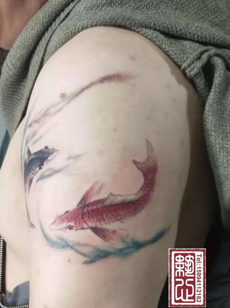 当前位置: 首页 >河南省安阳市纹身店-安阳筑心纹身培训机构纹身图案>双鱼纹身图片_水墨水彩纹身图案