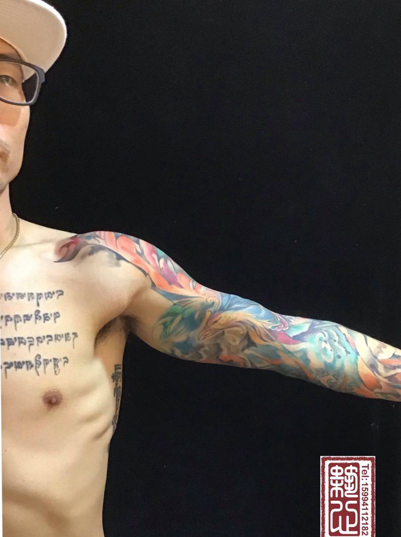 当前位置: 首页 >河南省安阳市纹身店-安阳筑心纹身培训机构纹身图案>原创凤凰彩色花臂纹身图片_手臂新传统纹身图案