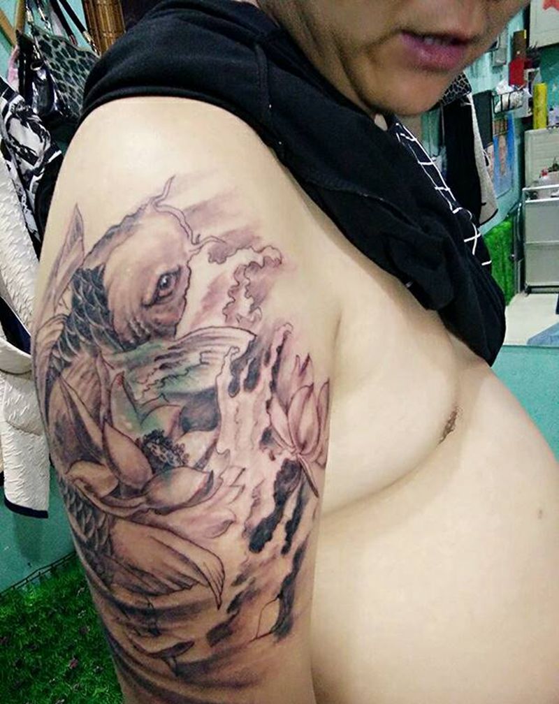 遮盖鱼,水纹尝试写实的手法纹身图片