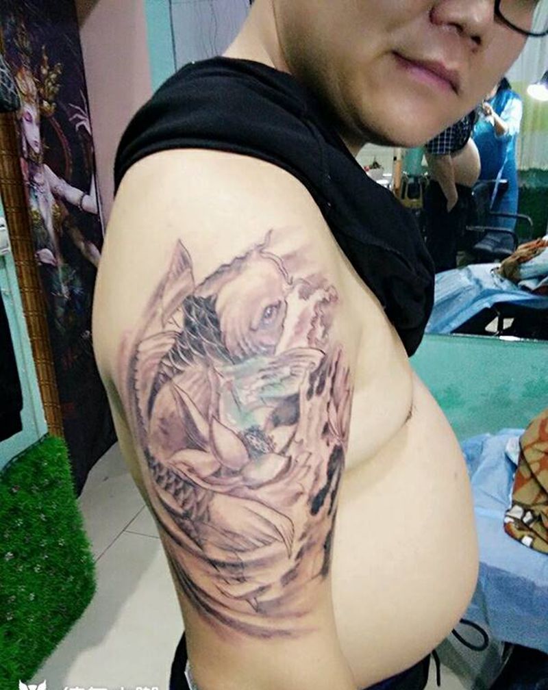 遮盖鱼,水纹尝试写实的手法纹身图片