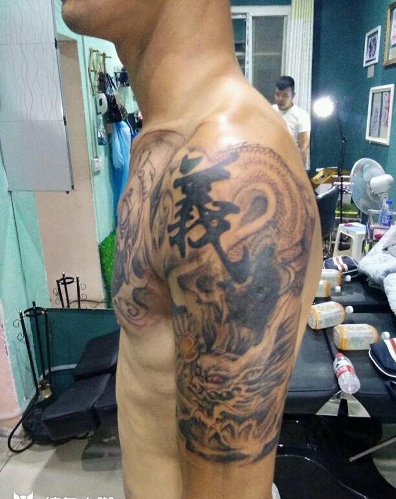 当前位置: 首页 >河南省安阳市纹身店-安阳筑心纹身培训机构纹身图案>关公半甲纹身图片