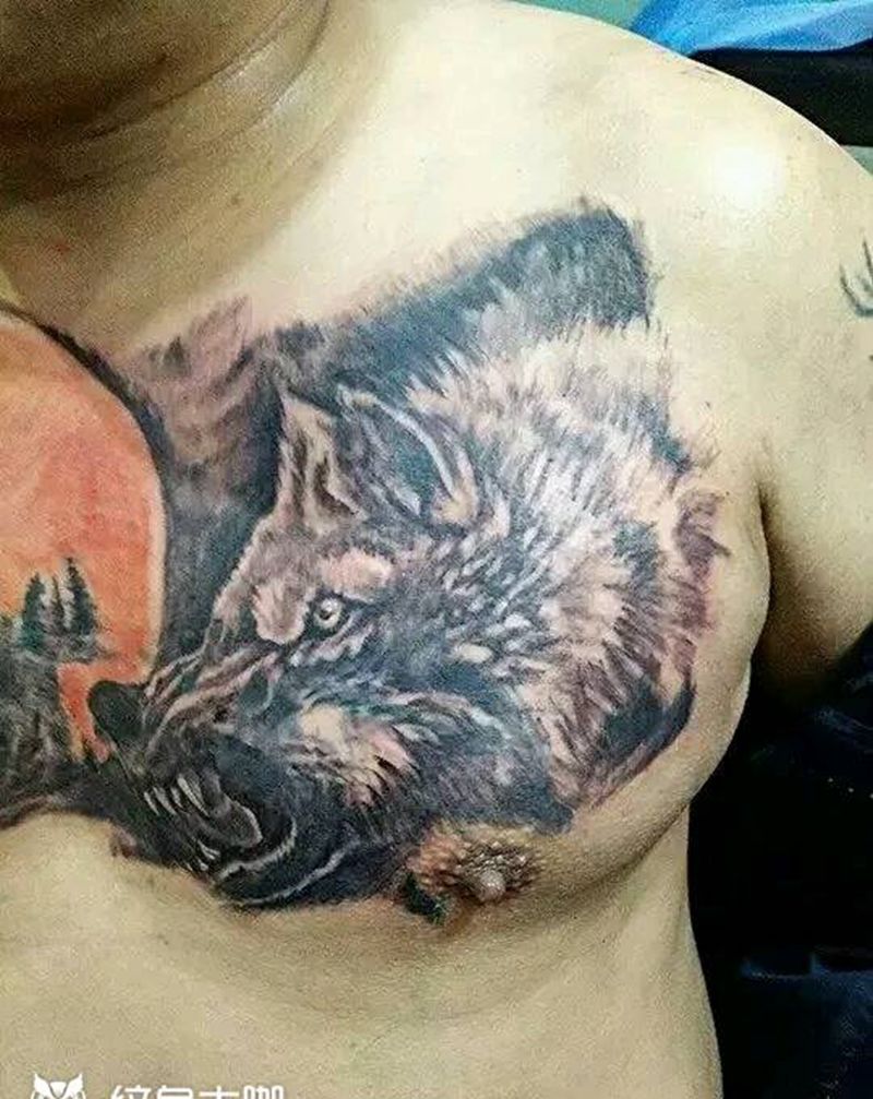 当前位置: 首页 >河南省安阳市纹身店-安阳筑心纹身培训机构纹身图案>狼纹身图片_胸部欧美写实动物成品纹身图案