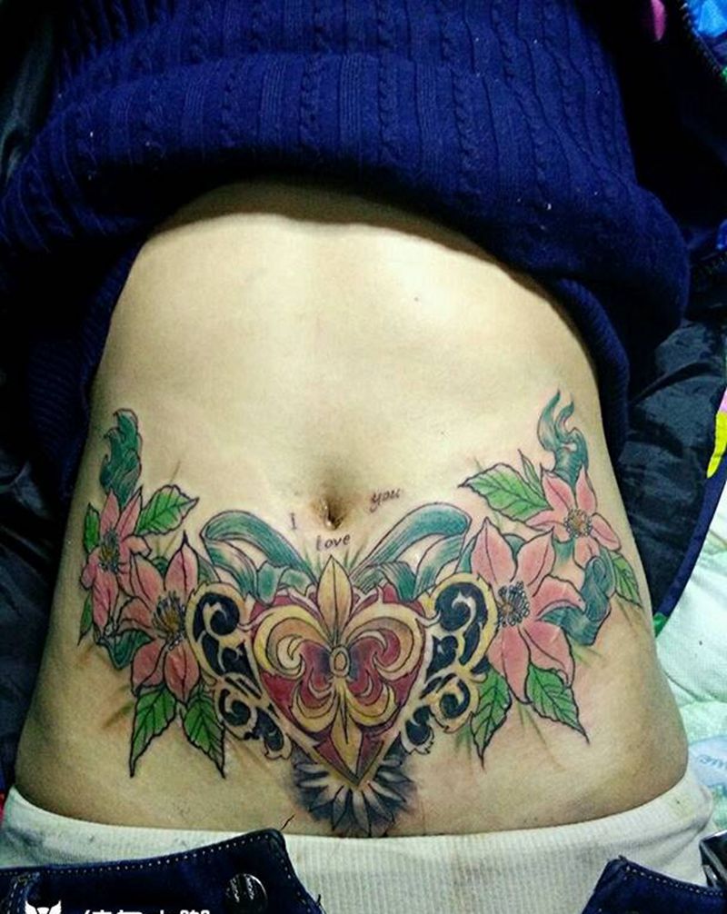 • T关于私处得爱!纹身图片_成品腹部清新字符图腾纹身图案