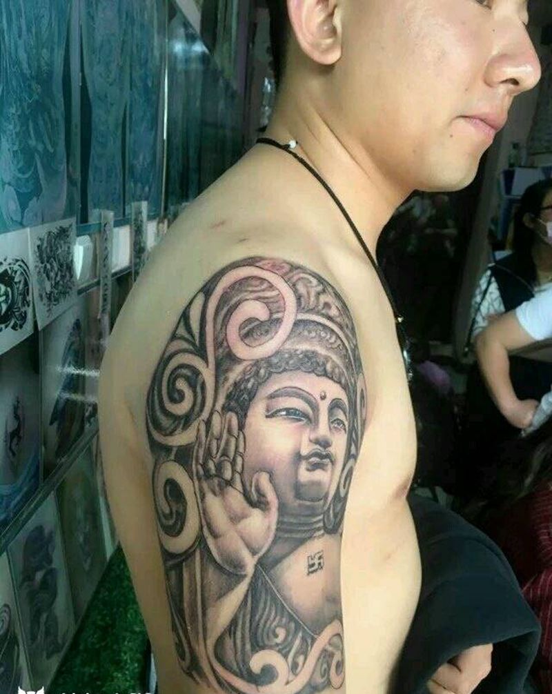 当前位置: 首页 >河南省安阳市纹身店-安阳筑心纹身培训机构纹身图案>佛纹身图片_肩部传统写实人物鬼神成品纹身图案