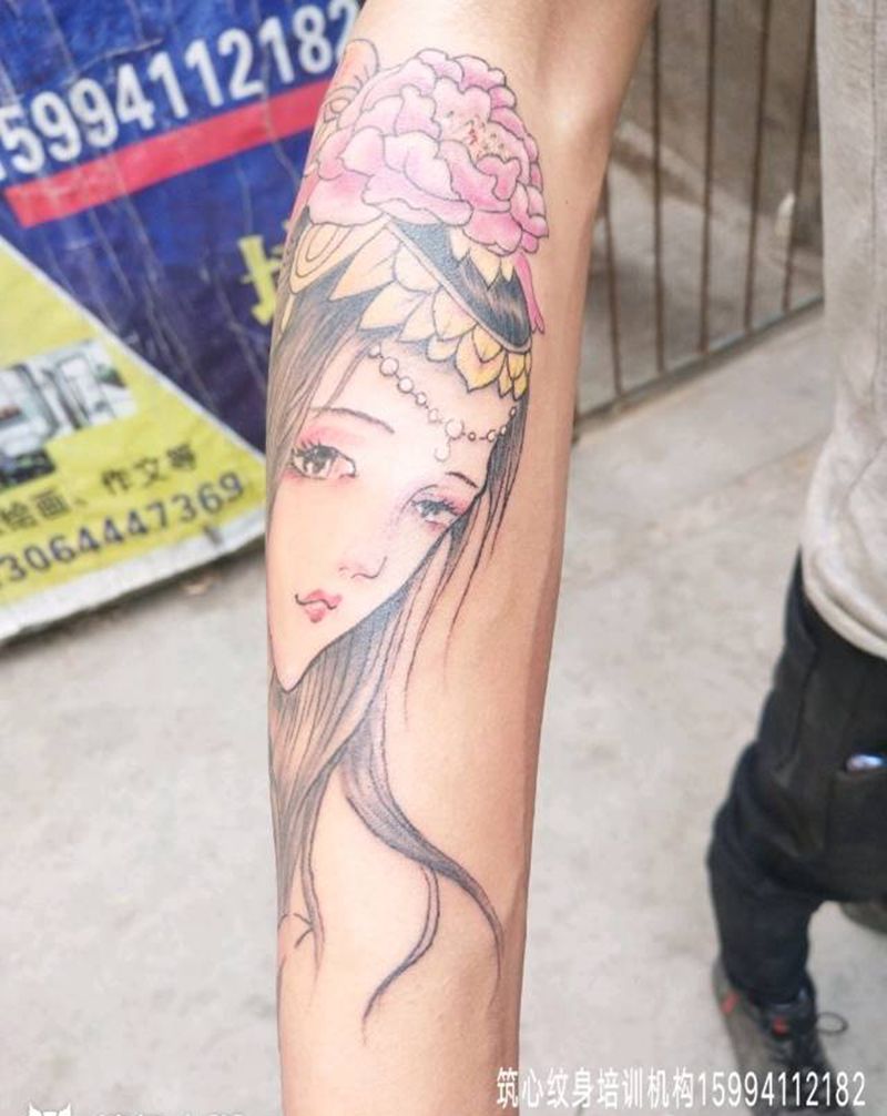 当前位置: 首页 >河南省安阳市纹身店-安阳筑心纹身培训机构纹身图案>艺伎纹身图片_手臂纹身图案