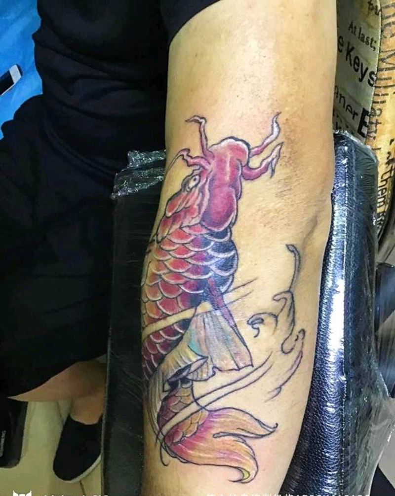 当前位置: 首页 >河南省安阳市纹身店-安阳筑心纹身培训机构纹身图案>鱼遮盖纹身图片_手臂新传统纹身图案