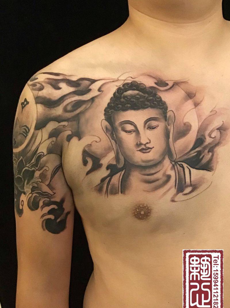 我佛慈悲,胳膊遮盖纹身图片_手臂新传统纹身图案