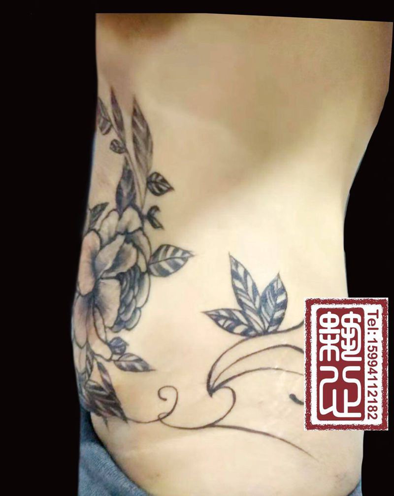 遮盖妊辰纹纹身图片_腹部新传统水墨纹身图案