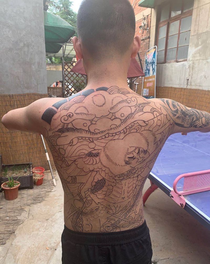 当前位置: 首页 >河南省安阳市纹身店-安阳筑心纹身培训机构纹身图案>老传统后背未完成图纹身图片_背部老传统纹身图案