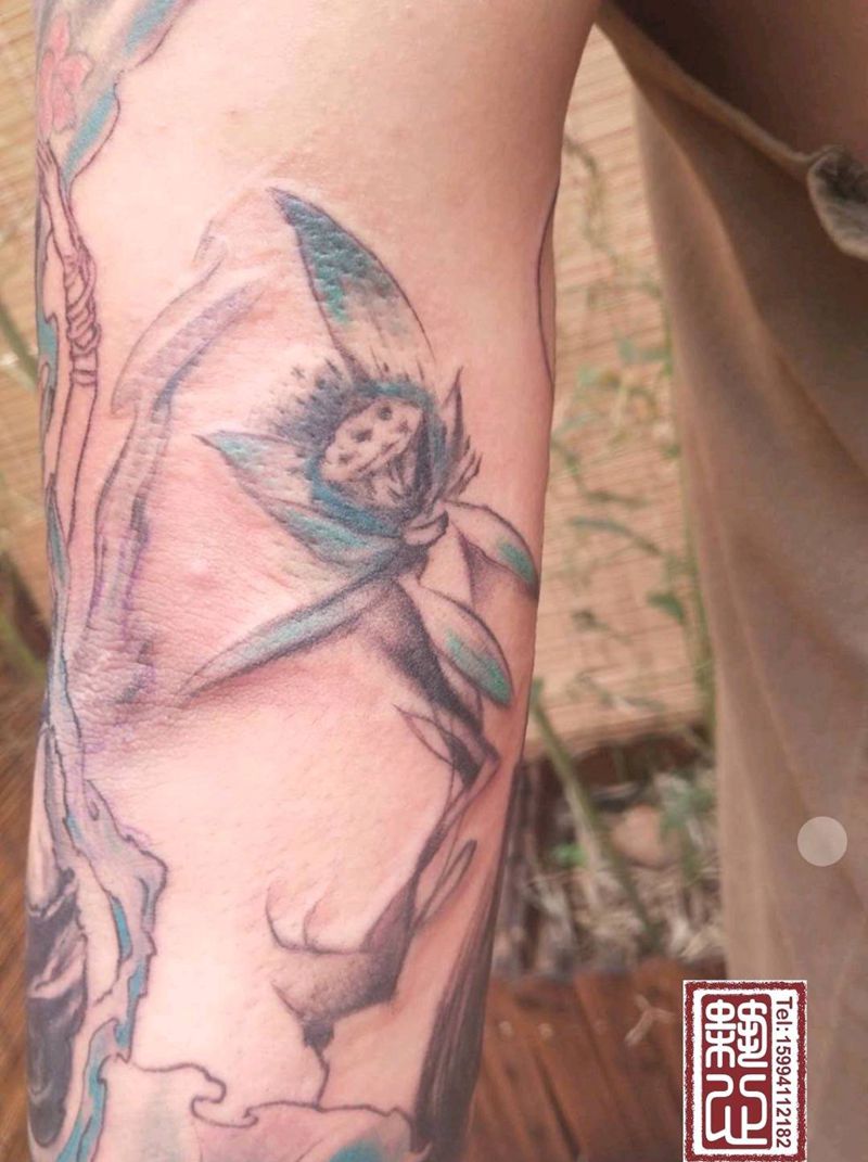 一组15张莲花纹身手