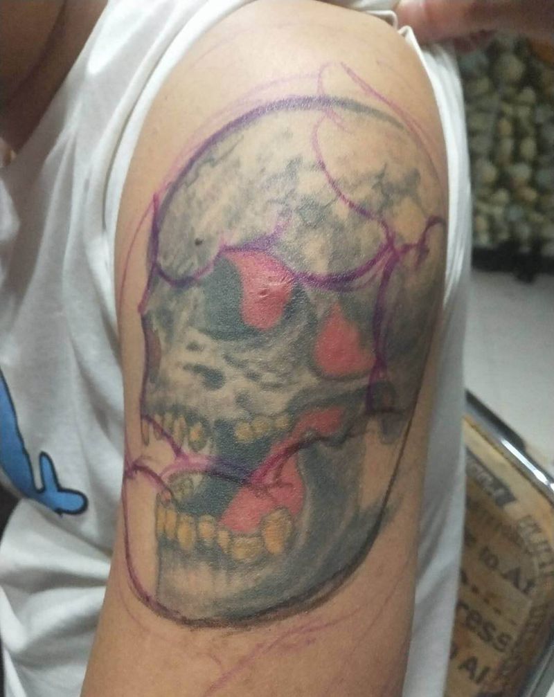 当前位置: 首页 >河南省安阳市纹身店-安阳筑心纹身培训机构纹身图案>原创牡丹遮盖旧纹身纹身图片_手臂肩部老传统Old School纹身图案