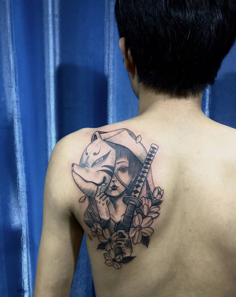 当前位置: 首页 >河南省新乡市纹身店-苏州轩墨纹身工作室纹身图案>艺妓纹身图片_背部点刺纹身图案